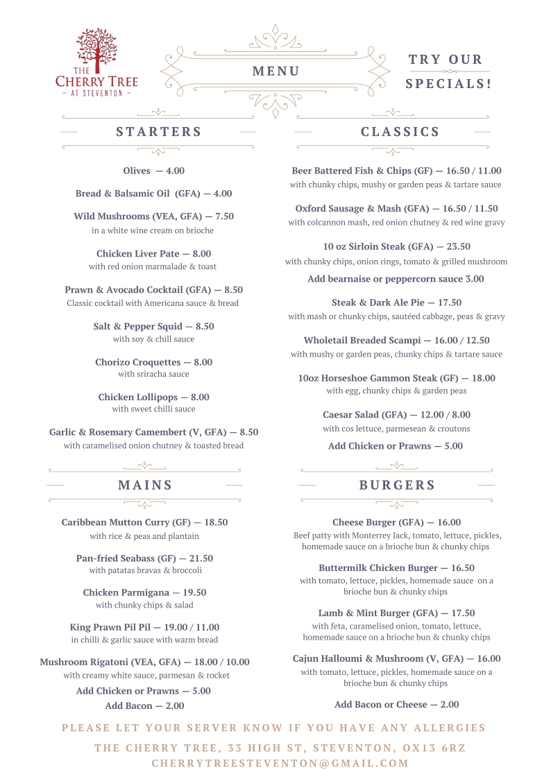 Settle in with a refreshing local ale or cider, and enjoy the inviting ambiance created by friendly staff, like the exceptional Kayley and Anne-Louise, who ensure every visit is memorable. Recent reviews highlight the impressive culinary skills of the chef, with dishes like roast potatoes earning high accolades. Whether you’re here for a casual meal or a special gathering, Cherry Tree - Steventon promises an unforgettable dining experience!